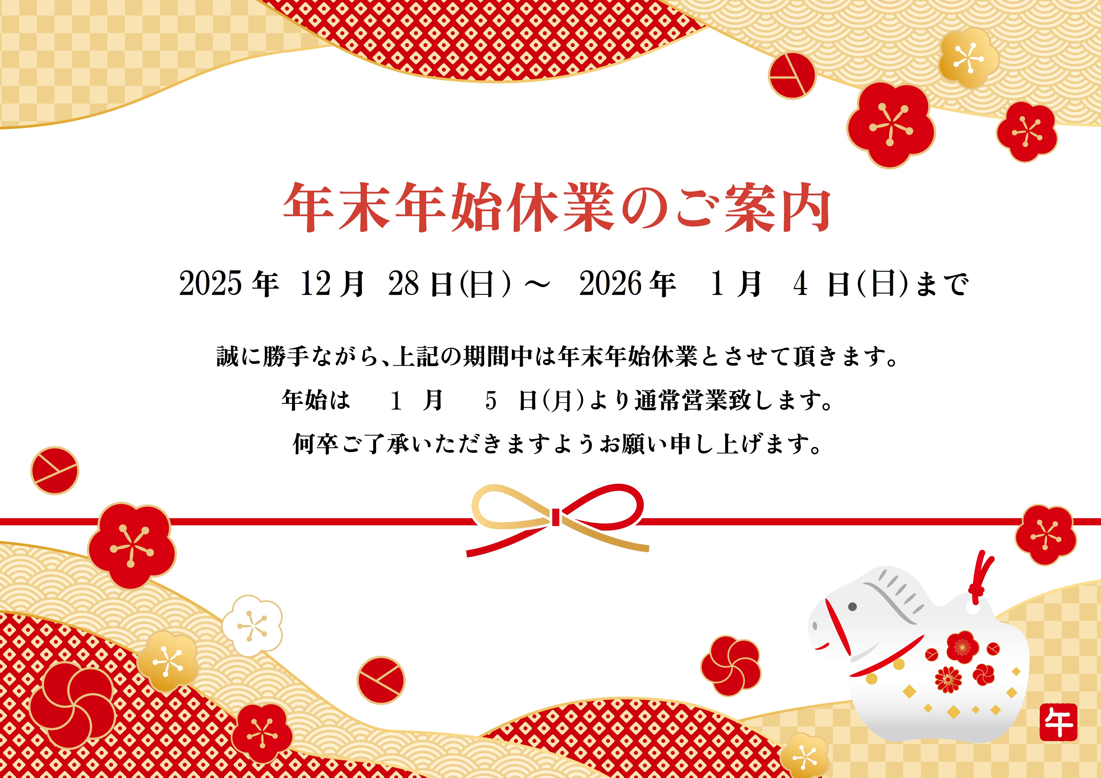 誠に勝手ながら下記の期間、年末年始休業とさせていただきます。
