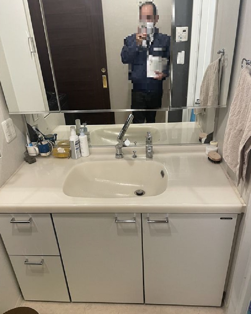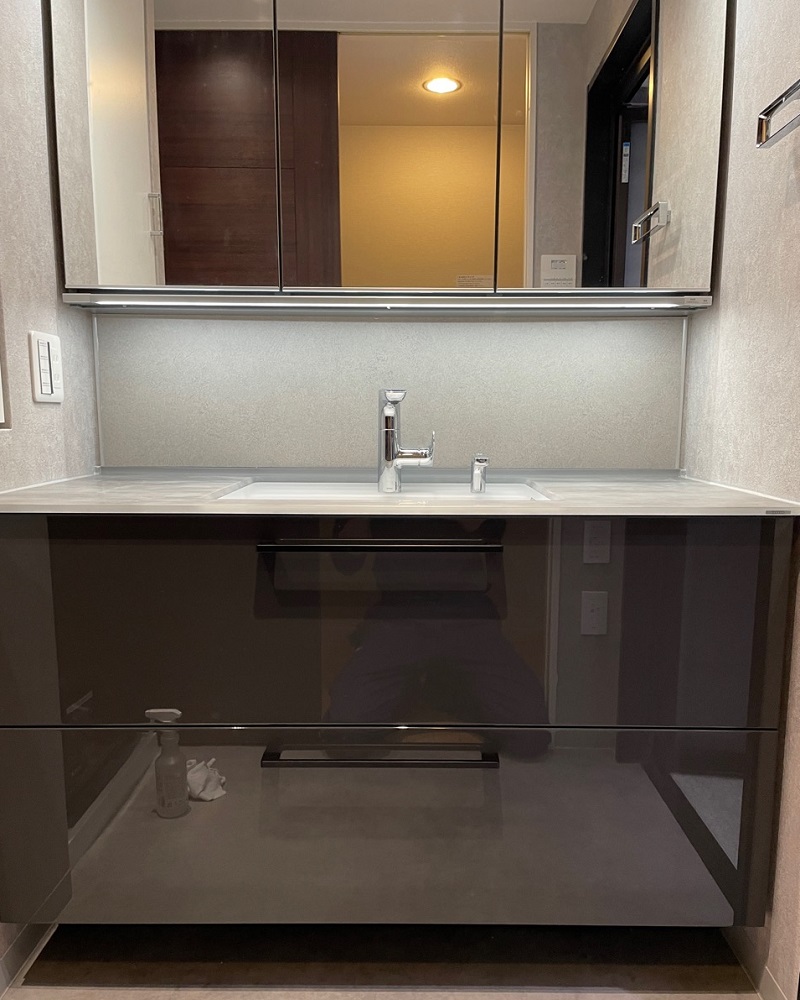 洗面所リフォームをさせていただきました。ショールームイベントにご来場され、スタイリッシュでかっこいい!とエスクアに即決。「きれい除菌水」や「すべり台ボウル」などお手入れしやすい機能が搭載されていることも決め手となりました。