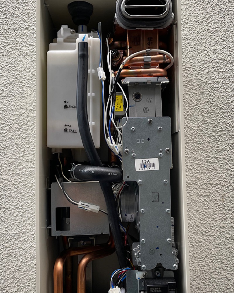 熱交換器のパイプ接続部からの水漏れしていたため、熱交換器交換で修理が完了しました。