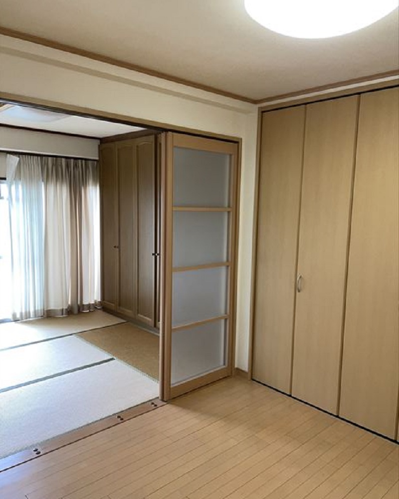 和室壁はサンゲツSP2557に貼り替え、木部は塗装をし、畳は縁なしに入れ替えをしました。